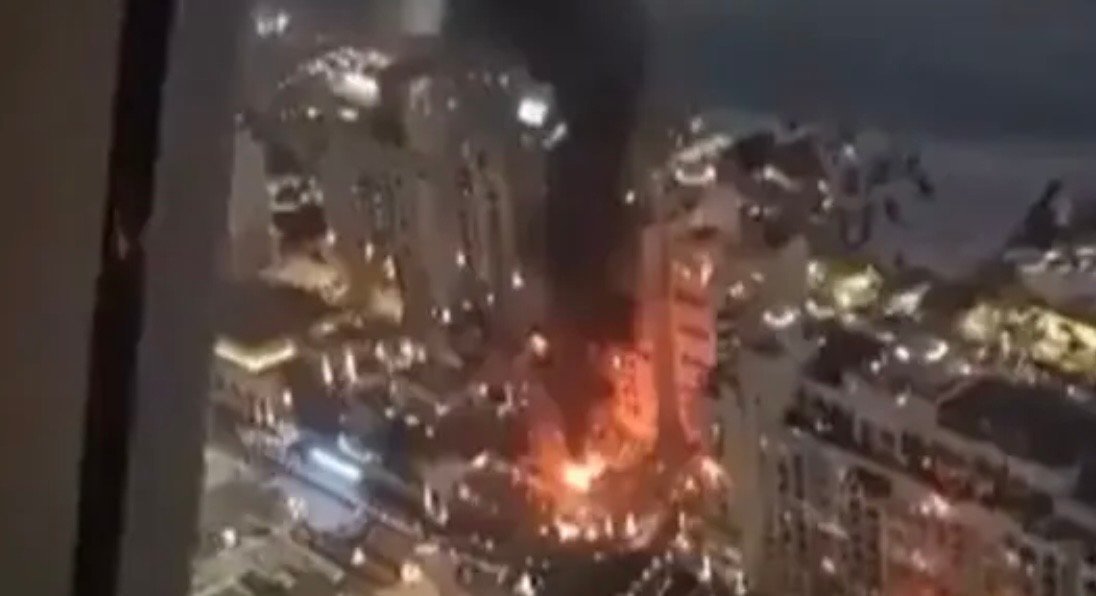 وأظهرت مشاهد متداولة مبنى يشتعل بجزيرة النخلة في دبي، وسط أنباء عن سقوط شظايا مع اعتراضات لصواريخ.
