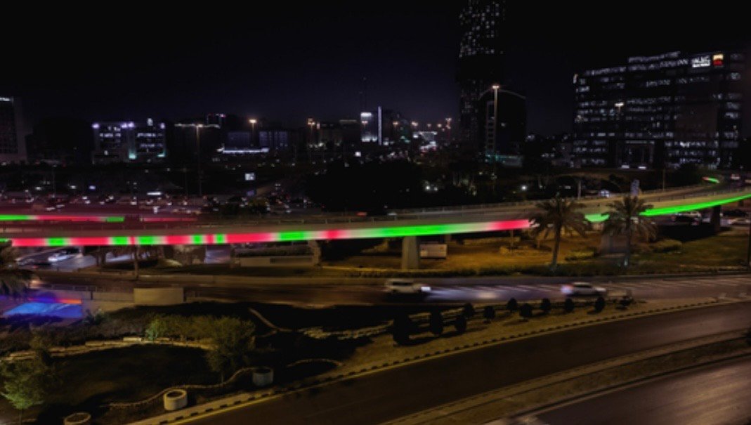 بجانب تركيب عمل «الجري إلى ما وراء» للفنان أنجيلو بونيلّو على الجسر المخصص للمشاة عند تقاطع طريق الملك عبدالعزيز مع طريق هشام بن عبد الملك، حيث يتفاعل العمل مباشرة مع موقع يتسم بالحركة والاتصال، ويحوّل نقطة العبور إلى معلم بصري من خلال دمج الحركة والضوء والبنية التحتية في النسيج العمراني.