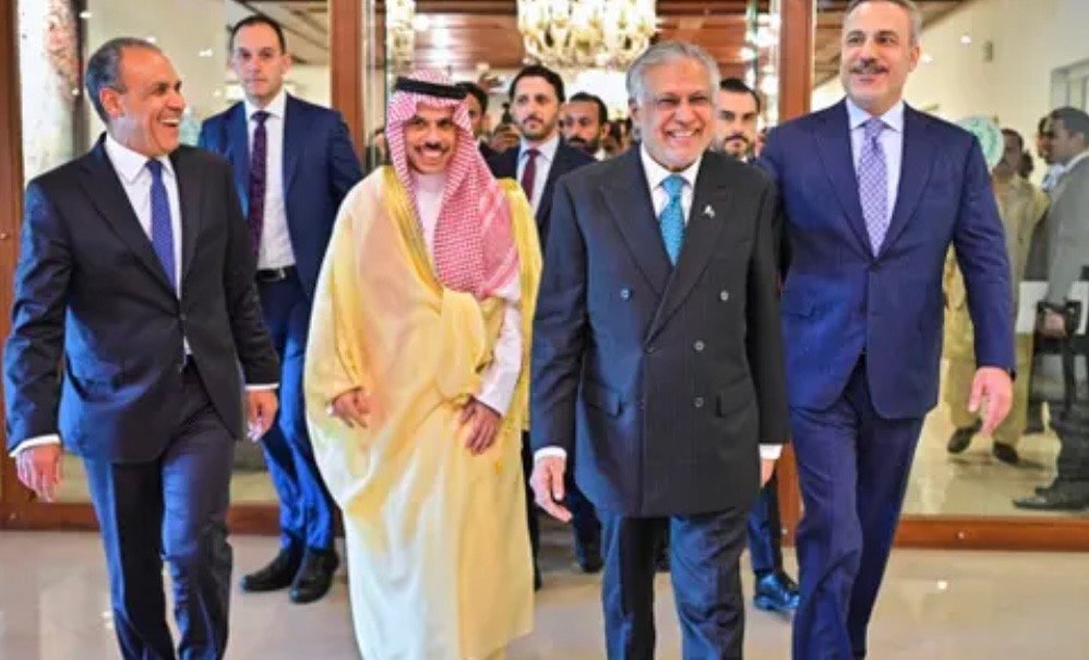 وأجرى إسحاق دار صباح الأحد لقاءات منفصلة مع نظرائه، السعودي فيصل بن فرحان والمصري بدر عبد العاطي والتركي هاكان فيدان. ثمّ التقوا جميعاً قائد الجيش الباكستاني عاصم منير.