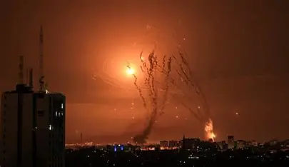 كما عُرضت على الهواء صور للهجمات الأمريكية والإسرائيلية على بعض المواقع، من بينها مكتب المرشد الإيراني علي خامنئي.