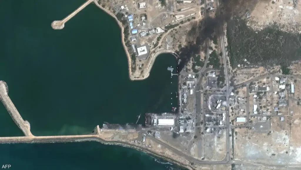 وتكشف الصور عن فرقاطة إيرانية تشتعل فيها النيران على الرصيف، مع كتل ضخمة من الدخان الأسود تتصاعد من هيكلها المحترق، فيما تبدو فرقاطتان أخريان راسيتين على مقربة منها دون أضرار ظاهرة.