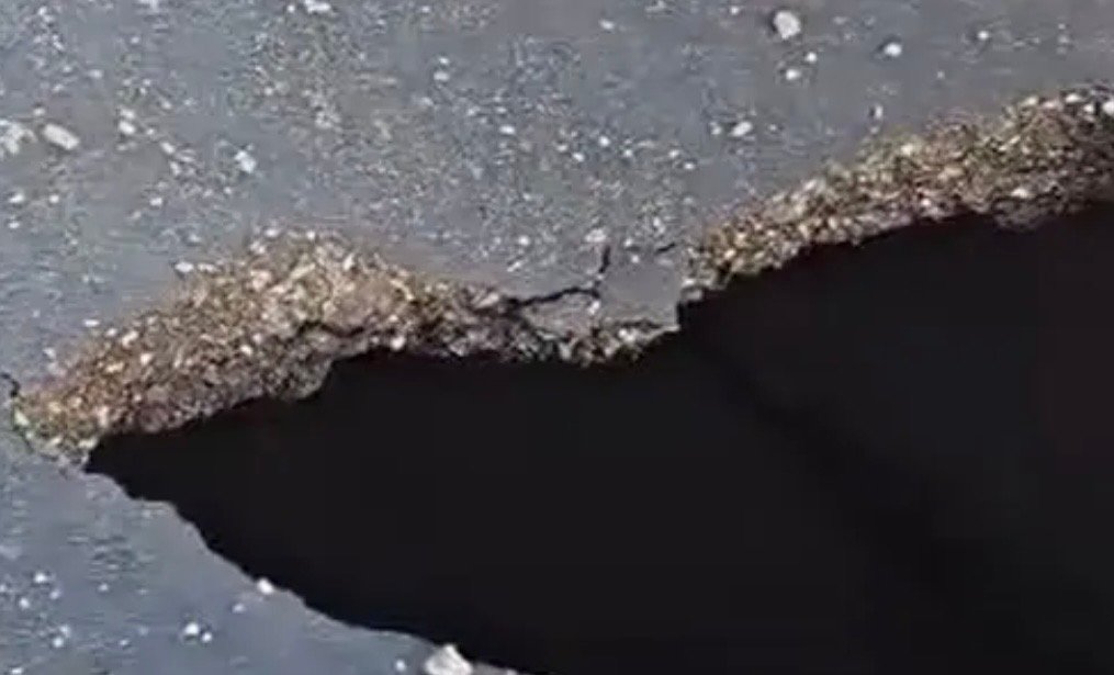 واكتشف قائدو السيارات المارة على الطريق الرئيسي بين أكتوبر والواحات هبوطاً أرضياً بالطريق، ما أثار رعبهم خشية ابتلاعه للسيارات.