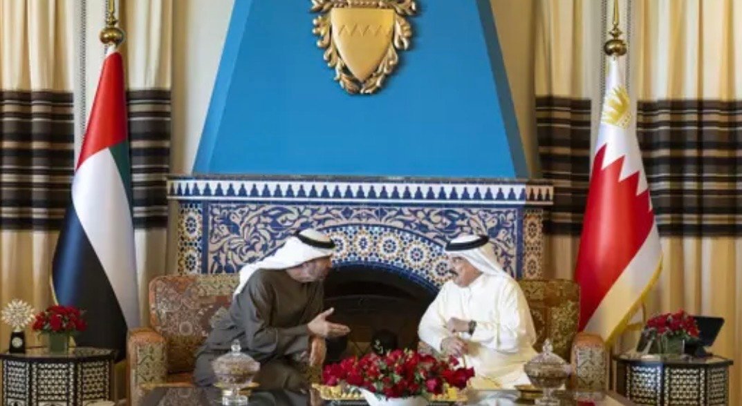 عقد العاهل البحريني الملك حمد بن عيسى، والشيخ محمد بن زايد، رئيس دولة الإمارات، جلسة مباحثات، في العاصمة البحرينية المنامة، إذ تبحث تداعيات مستجدات المنطقة “الخطيرة” على الأمن والاستقرار الإقليمي والدولي وتأثيراتها على أمن الملاحة الدولية، وإمدادات الطاقة، والاقتصاد العالمي، وتبادلا وجهات النظر بشأنها، وفقاً لوكالة أنباء الإمارات.