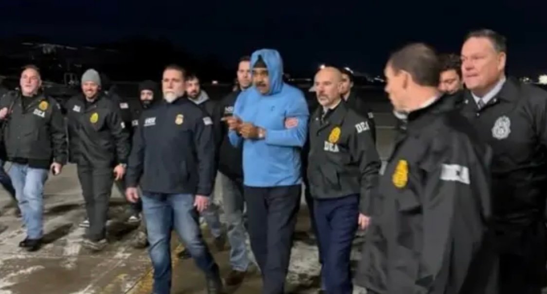 وفي وقت لاحق، نشر البيت الأبيض مقطع فيديو لمادورو، مكبل اليدين، ويقتاده عناصر أمن إلى مكاتب الوكالة الفيدرالية لمكافحة المخدرات.