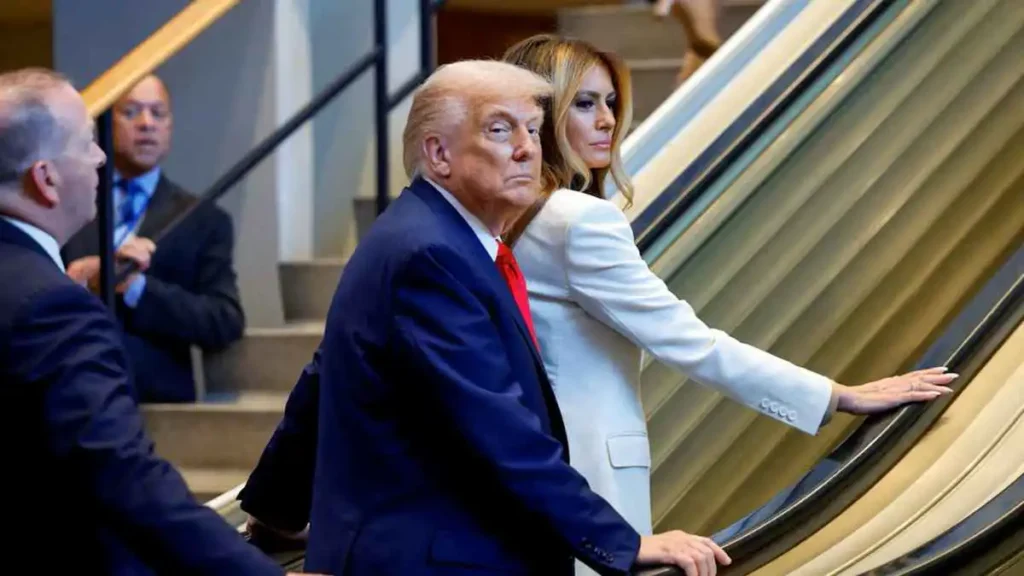 استطرد ترامب ليحكي عن زيارته العام الماضي لمقر الأمم المتحدة في نيويورك، عندما علق هو والسيدة الأولى ميلانيا ترامب على مصعد متحرك، قائلاً: “كنت محظوظًا لأن السيدة الأولى نجمتي السينمائية كانت أمامي، لأنني وضعت يدي على جزء معين من جسدها”.