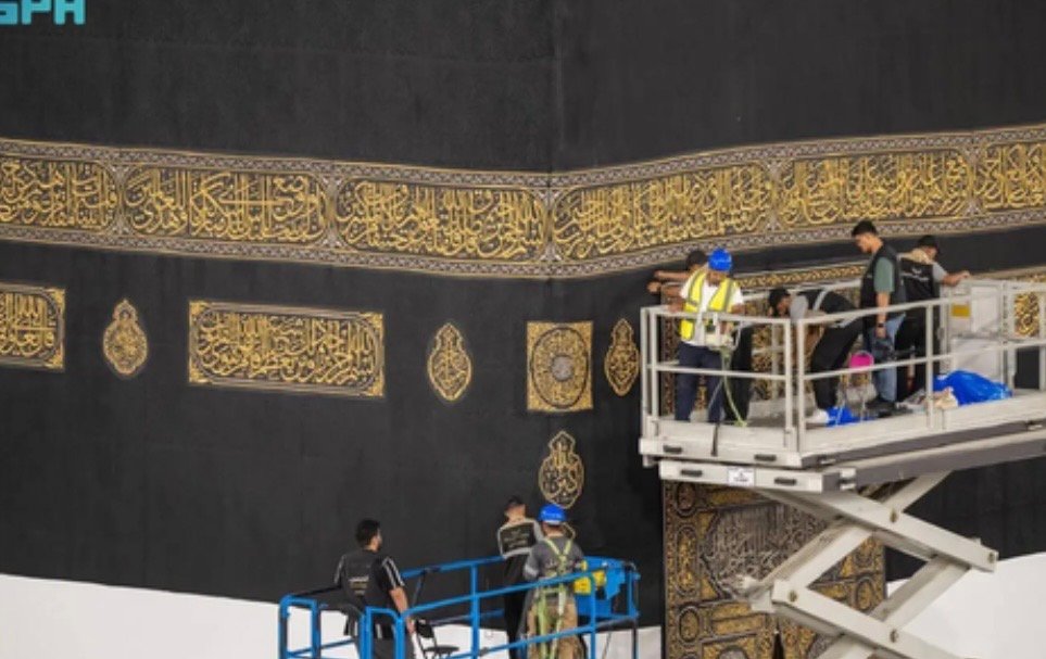 مكة المكرمة: إنهاء أعمال رفع الجزء السفلي من كسوة الكعبةع