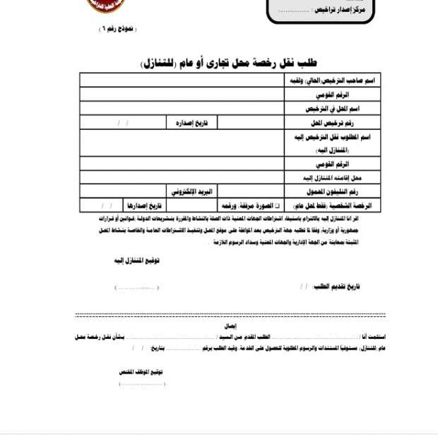 المستندات المطلوبة لنقل رخصة محل لوفاة المرخص له..