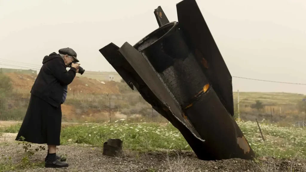 رجل يتفقد حطام صاروخ إيراني سقط بالقرب من قرية ماردا في الضفة الغربية، 31 مارس 2026.