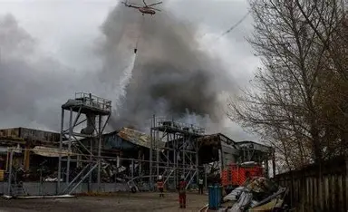 اشتعال النيران جراء قصف روسي على كييف شنت القوات الروسية، في وقت مبكر