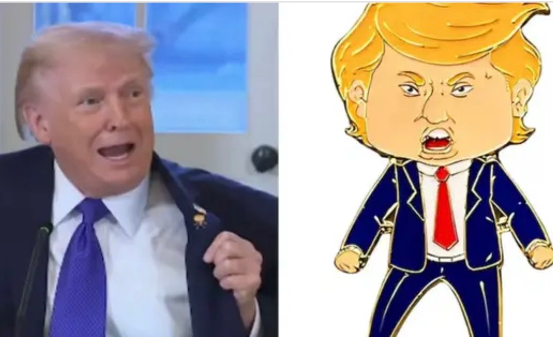 أظهر الرئيس الأميركي دونالد ترامب دبوسا جديدا على سترته خلال اجتماع في البيت الأبيض، الجمعة،