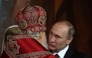 رفع الرئيس فلاديمير بوتين دمية سقطت من شجرة عيد الميلاد خلال قداس العيد في كاتدرائية