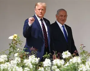 الرئيس الأمريكي ورئيس الوزراء الإسرائيلي في لقاء سابق يجتمع رئيس الوزراء الإسرائيلي بنيامين